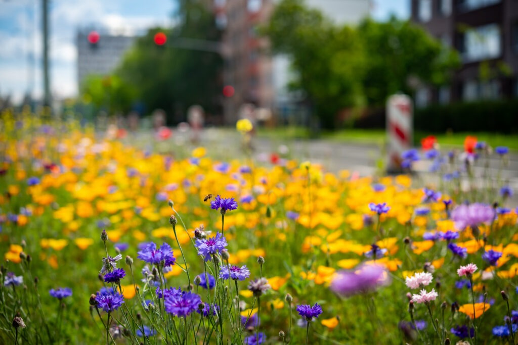 - Wo’s geht, wird’s grün: Grüne Plätze zum Durchatmen, Abkühlen und für die Artenvielfalt: Wir pflanzen Bäume und begrünen an der Stadtbücherei, am Zeugplatz, Rathausplatz sowie Fassaden, Dächer und „eh da“- Flächen auf Verkehrsinseln und am Straßenrand – hier kann es blühen, summen und brummen und sorgt gleichzeitig für ein gutes Klima.